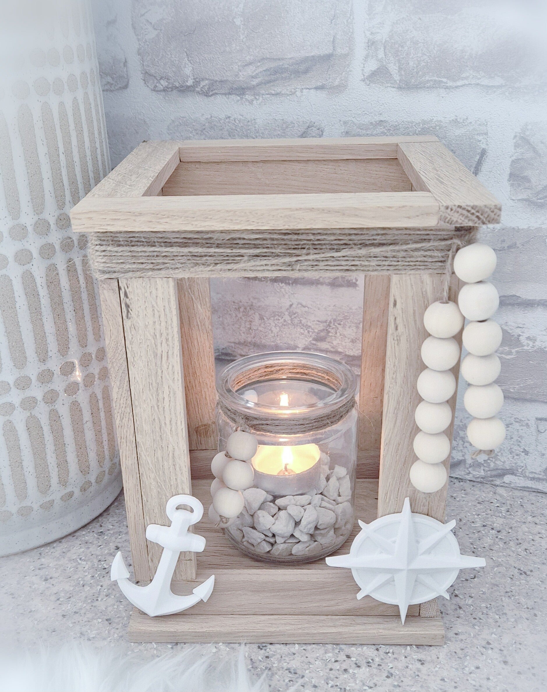Das Glas mit den Dekosteinen und dem Teelicht gehört zum Lieferumfang dazu.