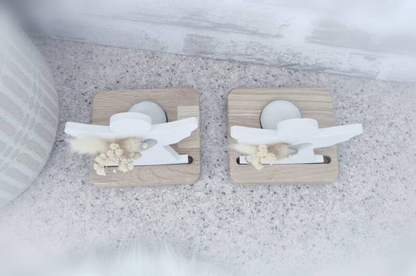 Der Sockel hat eine Einbuchtung, ideal für ein Teelicht, was den Engel wunderschön zum erstrahlen bringt.