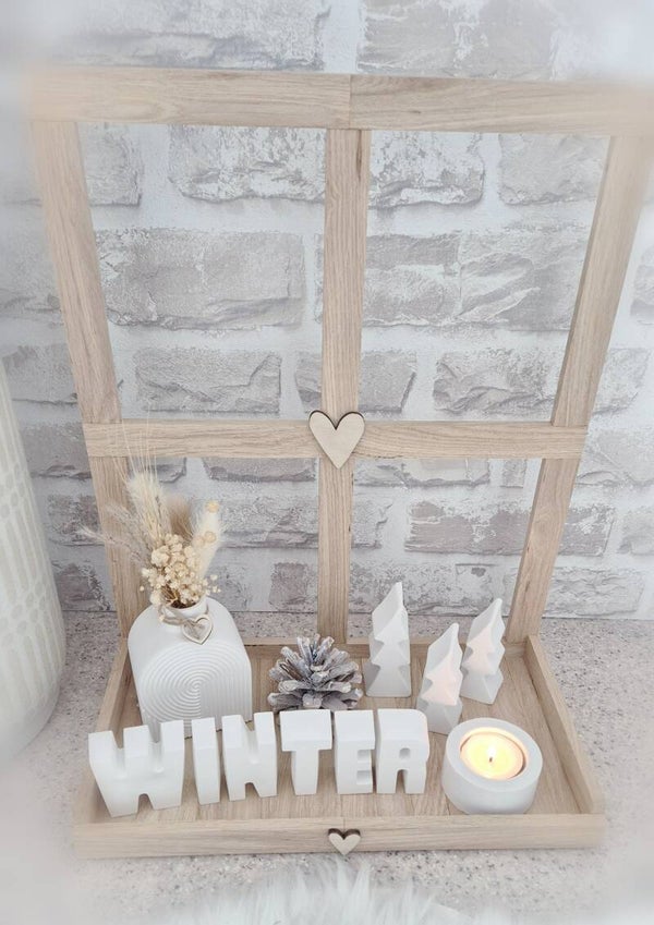 Man kann z.b nur das Deko-Fenster bestellen (und mit der bereits vorhanden Deko ergänzen), oder nur die Gipselemente (um gleich den entsprechenden Jahreszeiten anzupassen) oder das Deko-Fenster mit den Gipselemente.