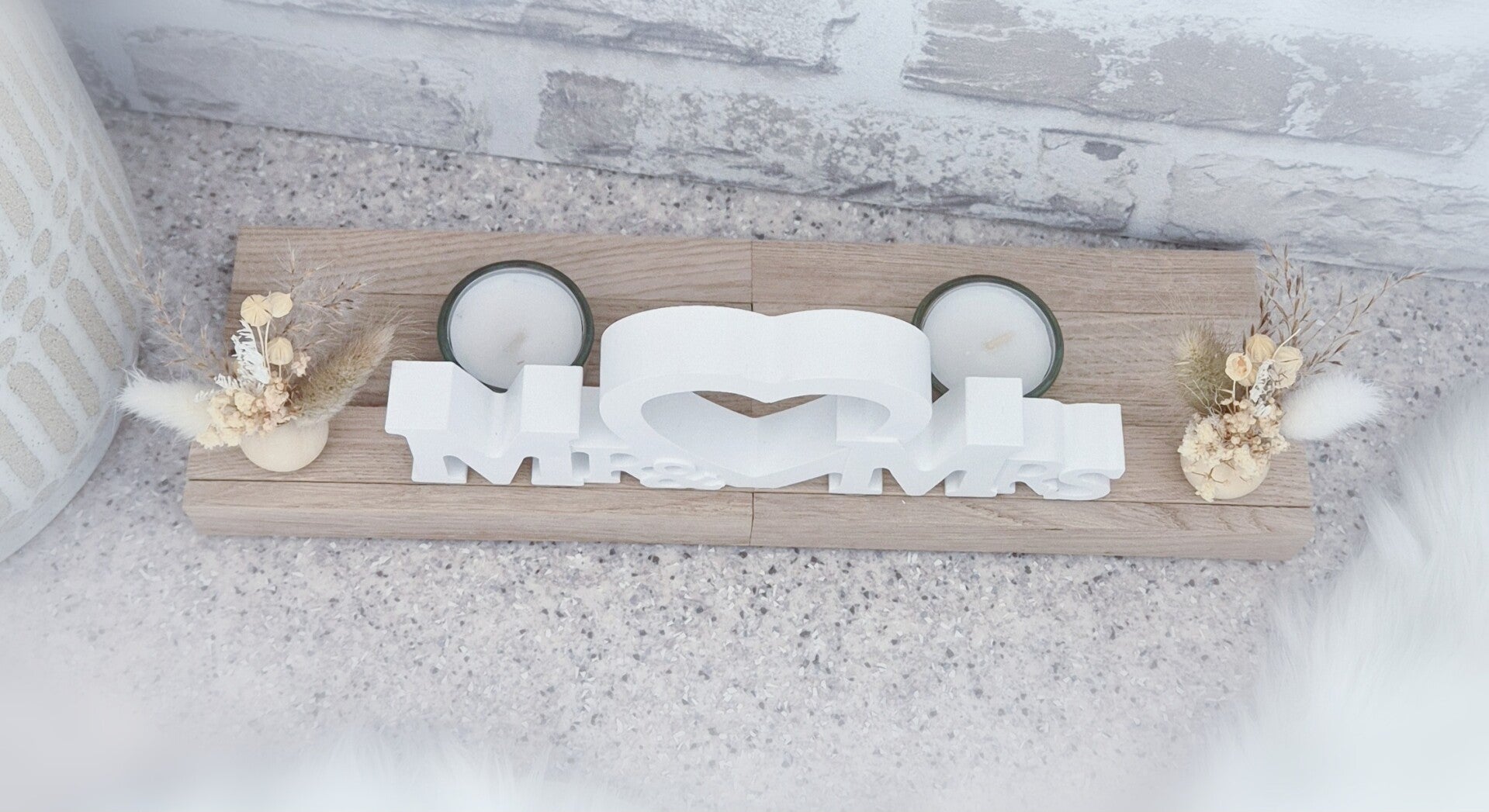 Der Aufsteller kann auf Wunsch beschriftet werden z.b Name vom Brautpaar, Hochzeitsdatum etc.